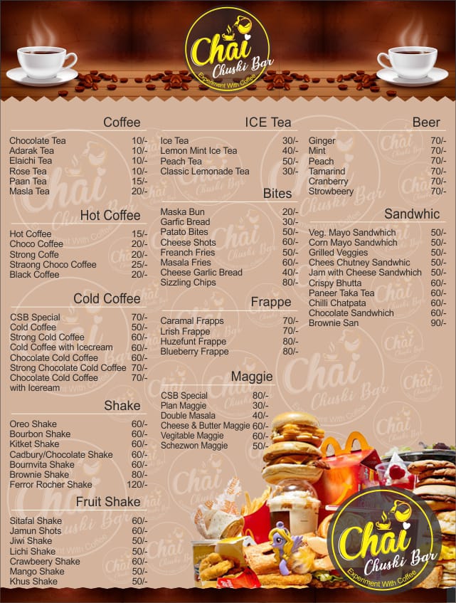 Aside from tea, Chai Chuski Bar also serves a selection of fast food, including sandwiches and delicious Maggi, catering to the cravings of snack lovers. Cold coffee and refreshing fruit shakes provide the perfect accompaniment to the flavorful bites.
